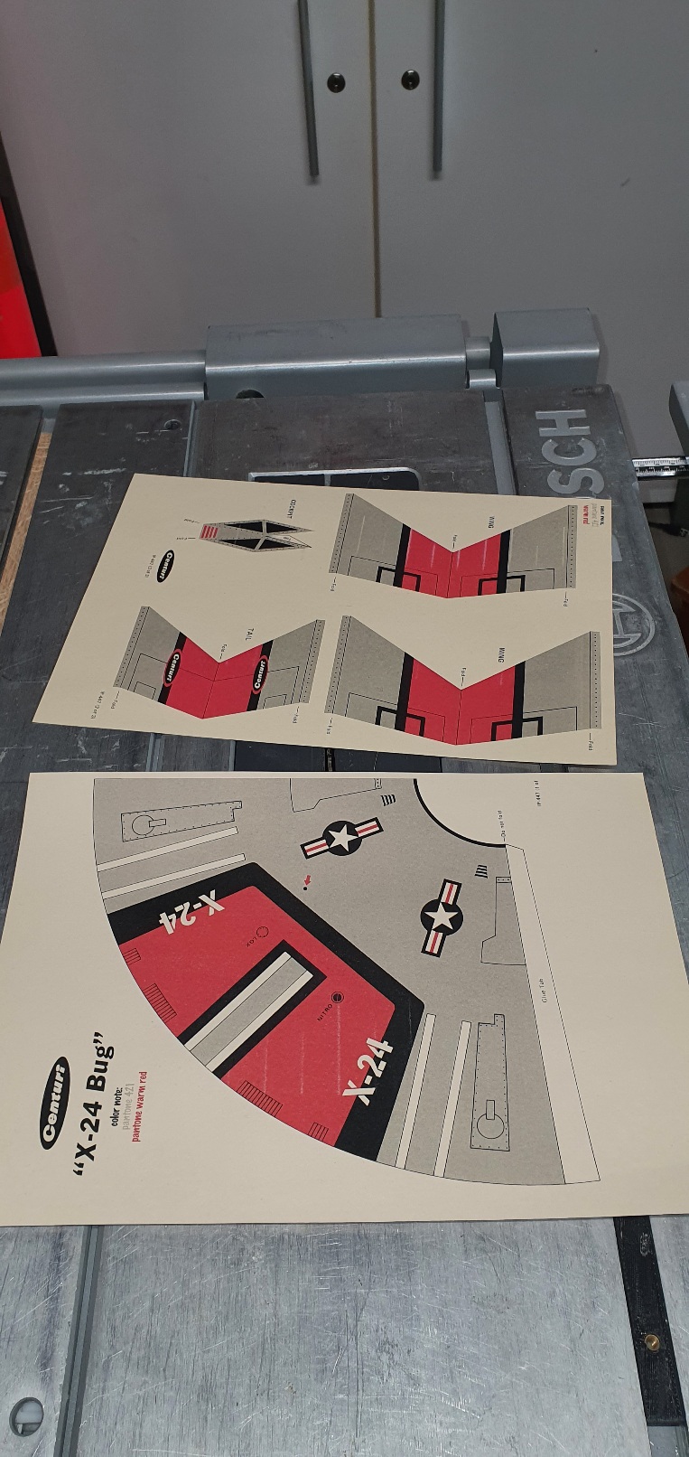 Beim stöbern auf der JimZ Seite ist mir die X-24 Bug in die Hände gefallen. Ich konnte mich daran erinnern, dass das Modell immer für sehr viel Spaß gesorgt hat. Die Flugbahn wahr allerdings nicht immer vorher zu sagen. Vieleicht wird es jetzt besser. Da der Spant von der Seite von Jim nicht so toll ist, habe ich ihn neu gezeichnet und ausgedruckt. Wer möchte kann den File bekommen. Bastelbogen auf Trennblatt Karton ausgedruckt. Spant 2mm ABS Boddy und Motorröhren verklebt .  und alles zusammen fügen.