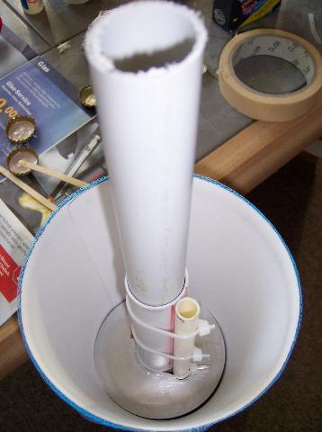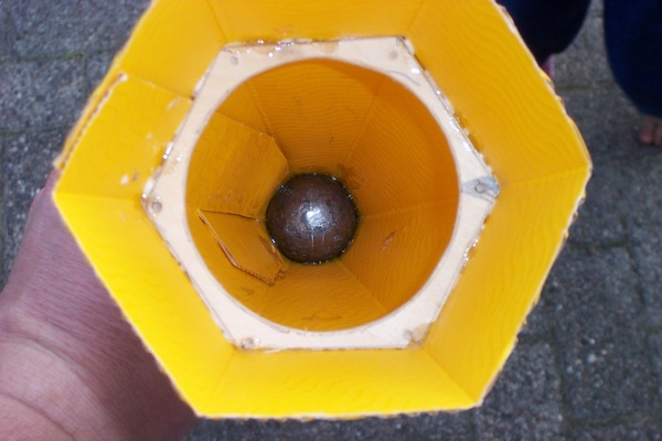 Sodele, nachdem ich in den letzten Wochen nicht die Zeit gefunden habe um in meine Garage zu schleichen habe ich heute einen Marathon hingelegt. Nach 13 Stunden hämmern, boren, schweißen und schmieden, unterbrochen von Besuchen meiner Kinder und völlig unnötigen Essenspausen, ist sogar etwas dabei herausgekommen. Ich wollte eine Tüte ohne Flossen. Nachdem ich mit Andreas Block telefoniert habe um mir Tipps zu holen und danach wusste, das es wahnsinnig viel Gewicht in der Nase braucht um stabil zu fliegen, habe ich letzte Nacht doch noch RockSim befragt. Tüchtig Gewicht in der Nase erfordert auch tüchtig Bumms unten! Aber wozu gibt es den BC!? So sieht das untere Innenleben meiner Schultüte aus: Alle Kräfte werden von dem inneren Gerüst aufgenommen, die sichtbare Tüte ist nur aerodramatische Verkleidung. Hier sieht man ein filigranes (270 gr.) Angelblei ín der Nase: Wenn unten schon feine Technik aus D-Land werkelt, warum dann nicht auch oben? Tja, und so sieht sie nun fertig aus. Abfluggewicht exakt 1 Kg...  Der BC Röhrenbrenner wird es schon wuppen, laut RockSim so auf 400 Meter...  Schaun mer mal... Grüße Michael