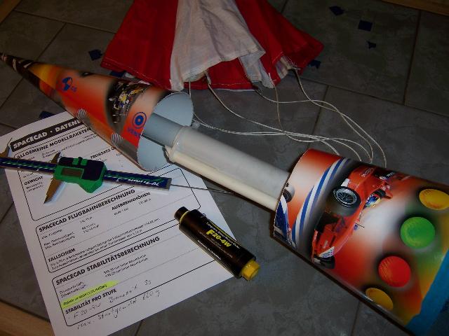 Hi hi, gleiche Macke ist gut! Ich habe es eben nochmal durchkalkuliert, mit dem Stirnbrenner mit Peak sind sogar über 500 Meter drin, 11 Sekunden bis Apogee. Wahnsinn... Froi Michael