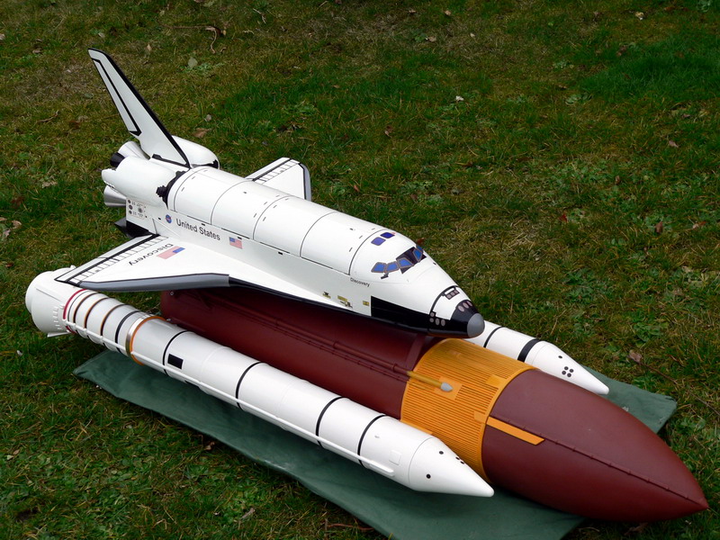 Diese Frage habe ich anderswo auch schon häufig beantworten und diskutieren müssen. Ganz einfach: Der Start ist das wichtigste, absprengen der Booster, Trennung vom ET und danach kommt der Shuttle im Sturzflug herunter. An ein gesteuertes Flugprogramm ist da sowieso nicht zu denken. Wenn alles gut geht bewirken die nach oben gestellten Höhenruder, dass sich vielleicht die Nase doch etwas aufrichtet und ein bisschen Gleitflug angedeutet wird, aber ich denke, dass der Shuttle aufgrund seines Gewichtes von ca. 3-4kg (genau weiß ich das noch nicht) eher wie ein Backstein zu Boden fällt. Für die paar Sekunden eine Fernsteuerung zu installieren, erscheint mir eher nutzlos. Da ich den Fallschirm trotzdem ziemlich spät ausklinken lasse, habe ich ein dickes Gummiband vorgesehen um den Schock beim aufgehen des Fallschirms zu dämpfen. Grüße, Rolli