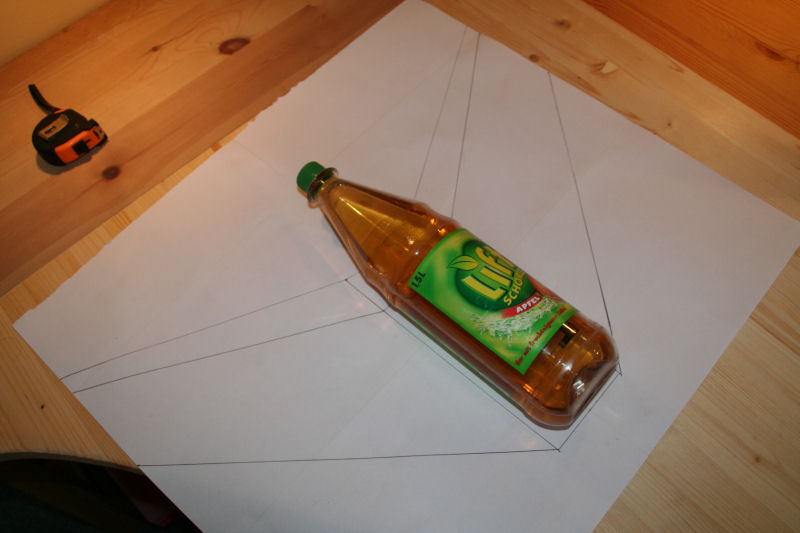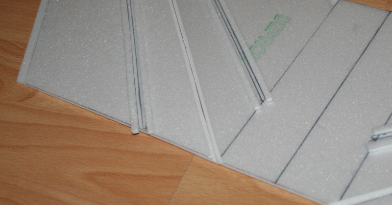 Mich hat der Gleiter-Virus nach dem Nicolaunch auch voll gepackt. Wir hatten dort ja schon sehr interessante Gespräche geführt. In den letzten Tagen hab ich meine Gedanken auch mal umgesetzt. Hier die ersten Ergebnisse. Im vergangenen Herbst hatte ich mir bereits einen ferngelenkten Nurflügler nach Bauplänen zusammenge- klebt, die auf der Seite stechflug.de zu finden sind. Hier ein Bild von dem Teil: Der Nuri wird angetrieben durch ein Brushless-Motörchen, der der ganzen Sache recht viel "Biss" verleiht. Mit dem Ding kann man relativ gut in der Thermik kurbeln, aber auch mächtig rumbrettern. Macht echt Laune. Nun denn, auf der stechflug-Seite ist beschrieben, wie man aus Depron recht einfach federleichte und stabile Tragflächen bauen kann. Das versuche ich nun bei meinem Gleiter umzusetzten. Ich möchte erst einmal kleine Brötchen backen und verbaue erst mal nur eine 1,5er Flasche. Für den Flügel habe ich den Flügel des "Small Rocket" (auf der Seite unter "Baupläne/Berichte zu finden) etwas abgewandelt. Ich hab an der Flügelwurzel den Flügel an die PET-Flasche angepasst, ausserdem bekam der Flügel ein asymetrisches Profil. Ein symmetrisches Profil ist nur bei Kunstflug notwendig. Ausserdem hab ich die Seitenleitwerke etwas verändert. Jetzt wurde alles auf 3mm- und 6mm-Depron übertragen und ausgeschnitten. Oben rechts ist die Unterschale für den Flügel. Links und rechts daneben die Obeschalen, darunter die Seitenleitwerke. Unter den Seitenleitwerken die Führungsleisten für die Holme. Die Holme (links) bestehen aus 6mm-Depron, alles andere aus 3 mm-Depron. Jetzt ging´s ans Schleifen und Zusammenkleben. Wer möchte, kann ja auf der stechflug-Seite nachlesen, aber ich beschreib´s hier trotzdem nochmal. Ober- und Unterschalen wurden zunächst an der Nasenkante mit einer 45°-Schrägen und an der hinteren Kante mit einer 10°-Schrägen versehen. Danach wurden die Führungsleisten für die Holme auf die Schalen geklebt. Dann wurden je eine Ober- und eine Unteschale an der Nasenkante mit 50mm breitem Klebestreifen zusammengeklebt. Sah dann so aus: Jetzt wurden die geschliffenen Kanten mit UHU-POR eingeschmiert und zusammengeklebt. Dabei muss man sehr genau arbeiten, damit der Flügel sich hinterher nicht verwindet. Danach wurden von der Mitte her die Holme eingeschoben. Die Holme haben am Ende eine Fase, in die die Flasche zu liegen kommt und dadurch zentriert wird. Auf den nächsten beiden Bildern sieht man das Profil an der Flügelwurzel und -spitze. Geändert von robby2001 am 05. Januar 2007 um 18:29 |
