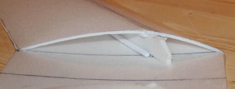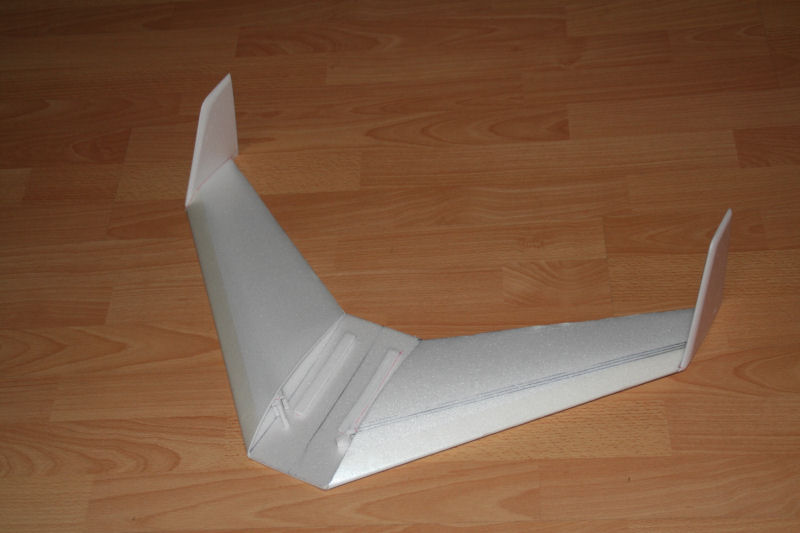Hier der fertige Flügel mit angeklebten Seitenleitwerken.
