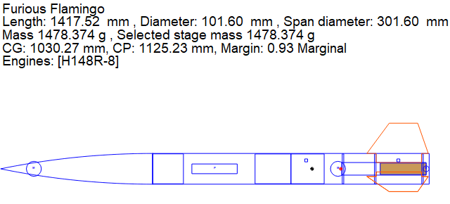 Vor Allem die Flossen und Zentrierringe habe ich nochmal etwas angepasst. Und ein wenig Gewicht in die Spitze gepackt um CP und CG noch etwas besser zu trennen. Die Margin von 0,9 sollte so passen (?). Ich denke, dass ich am Wochenende nun mit dem Bau anfangen kann. Material ist reichlich vorhanden und die Vorbereitungen laufen auf Hochtouren. Hier noch ein Screenshot der bisherigen Simulationen. Sollte euch gerade noch etwas ins Auge fallen, gerne melden. Wer den genauen Einblick haben will, hier die Datei auf dem letzten Stand. LG Jens |