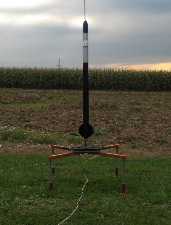 Leider warst Du an diesem noch so schönen Wochenende nicht dabei ! Das Antriebsteil welches Du meinst (Flügel in X-Wing Position) hat leider etwas zu wenig "Salz",für unseren kleinen Launch hatte ich ein neues Unterteil gebaut.Leider ohne besondere Optimierung. Deshalb waren die Animationen viel schlechter und das Modell drehte schon einiges. Die Flüge selbst waren klasse,Höhe ca. 400m,Fallschirm kurz nach dem Gipfelpunkt und eine Landung ca. 50m neben der Rampe.War echt eine klasse Wochenende. Gruss Fritz |