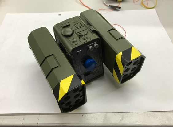 Es hat geklappt, die Verklebung ist gelungen. Das Servo ist jetzt auch stark genug für die Höhenverstellung. Die Frontplatte ist noch nicht fest draufgeklebt, falls ich nochmal an den Innenraum rankommen muss. Jetzt wird weiter an der Elektronik gearbeitet.