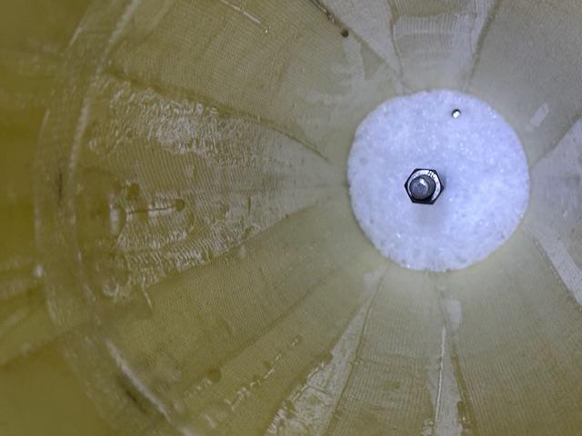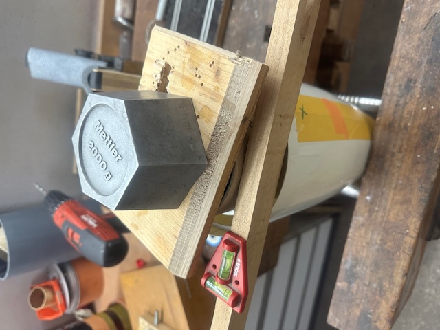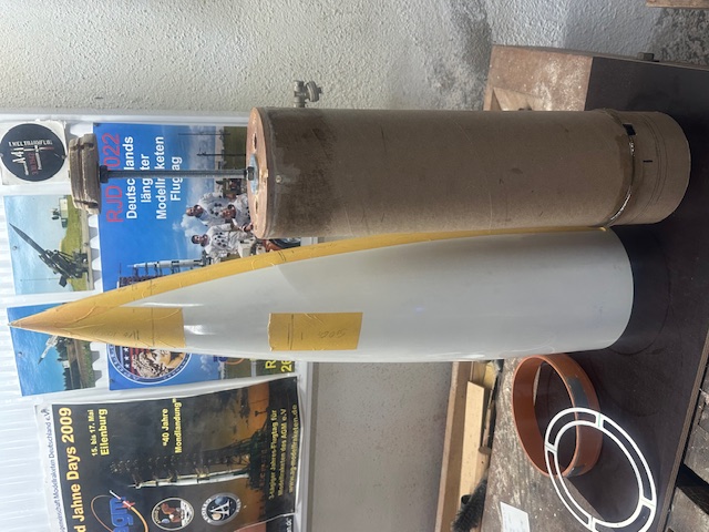 Zwischenzeitlich war die Spitze dran. Alle Teile dazu Zuerst ca 600gr,. Blei eingeharzt. Dann die konische Spant für die Innenrohraufnahme mit geschäumten EP-Harz eingeharzt Dann das InnenrohrAluspant montiert und alles ausgeschäumt. Noch eine kleine Schulder eingeharzt. Anschliessend einen Blick in Innenrohr und die A4 mit Railbutton(nicht im Bild) und Hutzen Nun geht es die Tage weiter mit der Ebay ect. !