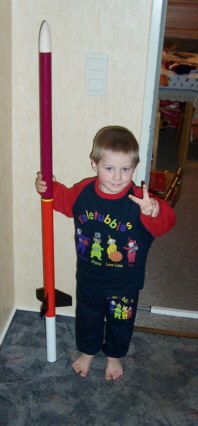 So, da ist sie nun. Der Rohbau meiner Texus / Skylark 7 ist fertig. Nun geht es an den Innenausbau. Dazu möchte ich von euren Erfahrungen profitieren. Bite schreibt mal Eure Meinungen zu folgenden Fragen: 1. Die Rakete ist 1,23 Meter hoch. Ist es besser sie als Mitten- oder Kopftrenner zu bauen? Noch ist beides möglich. 2. Kolben oder Edelstahlkühlung? Und wo einbauen? Von der Schwerpunktlage könnte ich noch Gewicht im unteren Bereich brauchen. Viele Grüße Michael P.S. Der Krümel rechts ist unser Sohn Dominic, ein echter Raketenfan ! Folgende Datei wurde angehängt: